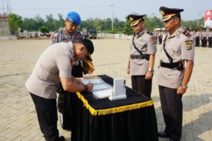 Proses pergantian pejabat ditandai dengan upacara serah terima jabatan (Sertijab) di lapangan Mapolres Pesawaran, Selasa (15/10/2019).