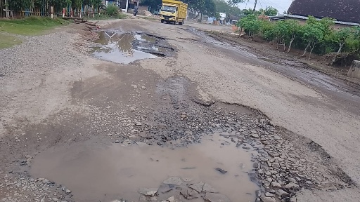 Menurut warga, jalan tersebut sudah lama rusak dan selalu bergenang air, namun upaya perbaikan yang serius belum ada dari Pemerintah, hanya diperbaiki sebatas penyiraman batu sabes saja.