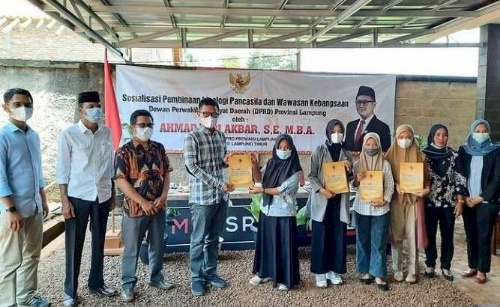 KIPRAH.CO.ID– Anggota DPRD Provinsi Lampung Ahmad Giri Akbar melangsungkan sosialisasi ideologi Pancasila dan wawasan kebangsaan di Desa Sripendowo, Kecamatan Bandarsribhawono, Kabupaten Lampung Timur, Minggu (21/3/2021).
