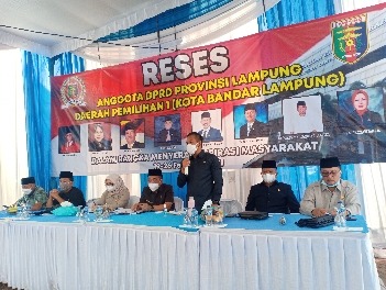 KIPRAH.CO.ID– Anggota DPRD Provinsi Lampung Dapil 1 Bandar Lampung, serap aspirasi masyarakat dengan lakukan Reses di Kelurahan Surabaya, Kedaton, Selasa (23/2/2021).
