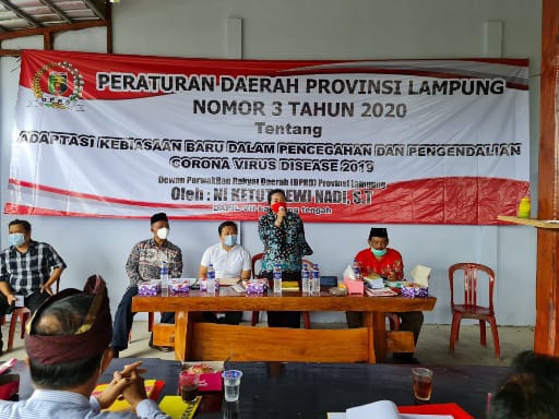 Hal ini menjadi topik bahasan Anggota DPRD Provinsi Lampung Dapil Lampung Tengah Ni Ketut Dewi Nadi saat melangsungkan giat Sosialisasi Peraturan Daerah nomor 3 tahun 2020 tentang adaptasi kebiasaan baru dalam Pencegahan dan Pengendalian Corona Virus Disease 2019 atau COVID-19 di Seputih Jaya, Lampung Tengah, Minggu (14/2/2021).