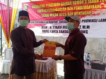 KIPRAH.CO.ID– Syarif Hidayat Anggota DPRD Provinsi Lampung Dapil 1 Kota Bandarlampung menggelar sosialisasi peraturan daerah (Sosperda) nomor 3 tahun 2016 tentang perlindungan dan pemberdayaan usaha mikro, kecil dan menengah.