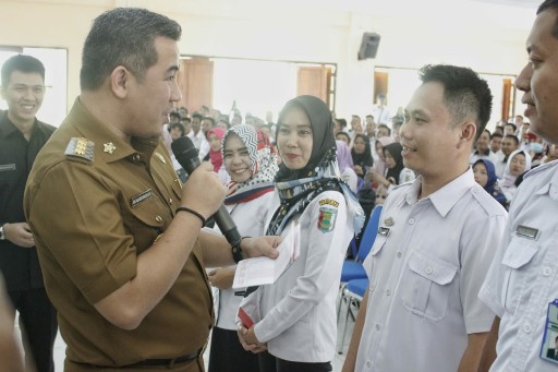 kepada 8.078 orang tenaga kontrak dengan rincian sebagai berikut; petugas tenaga kontrak sebanyak 2432 orang, persatuan guru honor murni sebanyak 2397 orang, forum tenaga honorer sekolah negeri Indonesia sebanyak 1985 orang, guru PAUD sebanyak 1200 orang, dokter, dokter gigi dan dokter spesialis sebanyak 9 orang, satuan petugas kebersihan dan pertamanan sebanyak 55 orang.