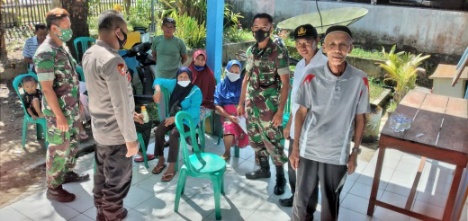 Kehadiran Babinsa Koramil 422-01 Serda Aris dan Serda Dulloh, mendampingi serbuan vaksinasi bertujuan agar kegiatan tersebut berjalan dengan aman dan lancar.