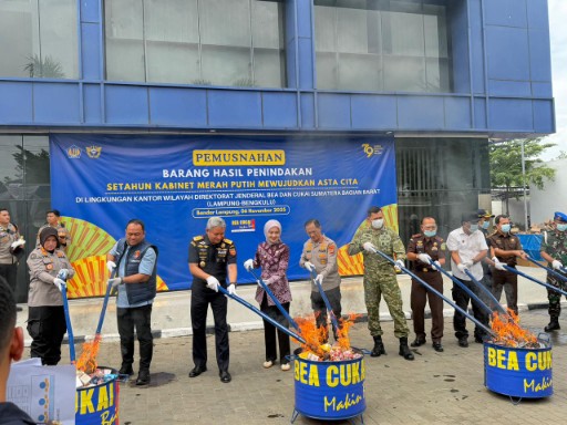 “Dalam upaya menjaga integritas dan efektivitas penindakan, Bea Cukai Sumbagbar bersinergi erat dengan Kejaksaan Tinggi, Polri, TNI, BNN Provinsi, serta pemerintah provinsi di Lampung dan Bengkulu untuk memastikan setiap langkah dilakukan secara profesional dan terukur sebagai bagian dari fungsi perlindungan masyarakat serta pengamanan keuangan negara,” tegas Agus.