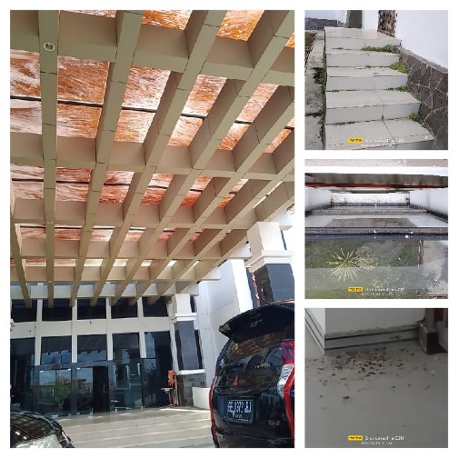 Berdasarkan hasil pantauan awak media, kondisi itu tampak dipandang mata saat ingin memasuki pintu utama, atap kaca memerah ditumbuhi lumut.