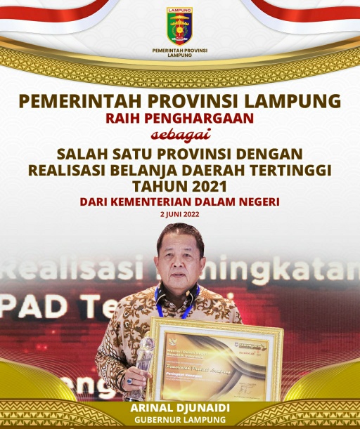 Hingga akhir 2021, realisasi APBD Provinsi Lampung berhasil mencapai 99,00%. Selain itu, Pemprov Lampung juga berhasil merealisasikan belanja daerah sampai 94,01%. Penghargaan ini diberikan berkat kerja keras semua pihak bersama OPD terkait dalam merealisasikan belanja APBD dan melaksanakan pengarahan-pengarahan yang selama ini diberikan oleh Gubernur Arinal.