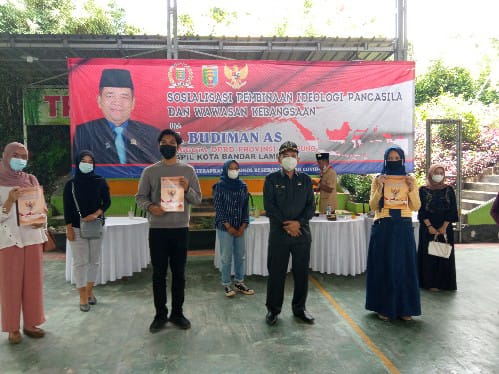 KIPRAH.CO.ID– Guna meningkatkan pengetahuan wawasan dan pengetahuan terhadap kebangsaan kepada masyarakat mengenai nilai-nilai Pancasila, seluruh anggota DPRD Lampung hari ini (dan besok) menggelar sosialisasi pembinaan ideologi Pancasila dan Wawasan Kebangsaan. Salah satunya anggota DPRD Lampung Dapil Bandarlampung Budiman AS.