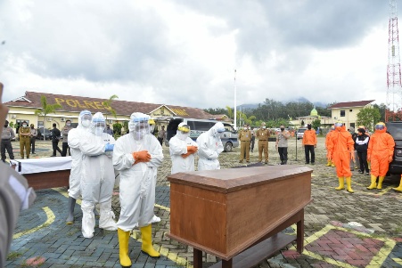 Selain penanganan ketat protokol kesehatan pada jenazah, juga saat dilakukan pemakaman diliang lahat pun dilakukan dengan tetap memperhatikan standar operasional kesehatan yang ditentukan.