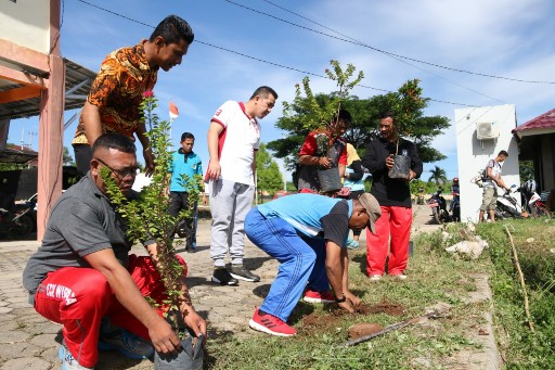 KIPRAH.CO.ID– Bupati Pesawaran H.Dendi Romadhona, pantau langsung kegiatan Jumat (29/3/2019) pagi saat seluruh dinas melakukan penanaman pohon dan bunga, guna meningkatkan keindahan kantor.