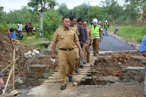 “Jalan yang sedang di bangun ini sangat diharapkan masyarakat, dan Alhamdullilah sekarang sudah di perbaiki, bahkan sampai di hotmix, ini juga salah satu bukti pemerintah daerah memperhatikan rakyat, tinggal kita jaga bersama supaya jalan ini tetap awet,” ujar kepada warga desa sekitar.
