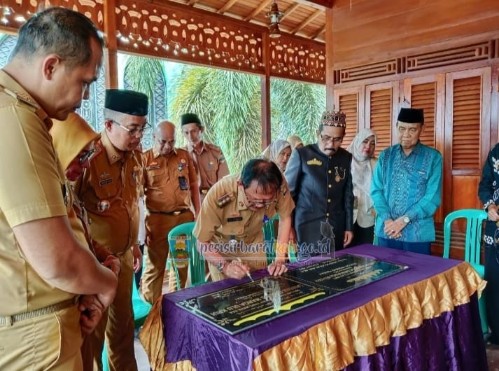 KIPRAH.CO.ID, PESISIR BARAT– Bupati Pesisir Barat, Agus Istiqlal meresmikan rumah adat Lamban Gedung Sai Batin Marga Ulu Krui, di Pekon Gunung Kemala, Kecamatan Way Krui, Selasa, 18 Februari 2025.