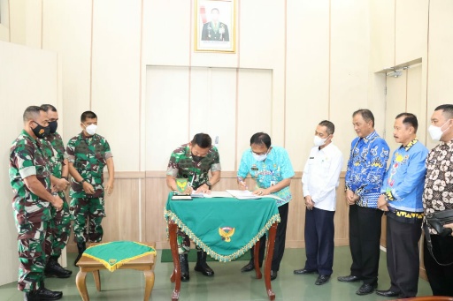 KIPRAH.CO.ID– Bupati Pesisir Barat Provinsi Lampung, Dr. Drs. Agus Istiqlal S.H, M.H melakukan Penandatanganan Berita Acara Serah Terima dan Nota Perjanjian Hibah Daerah Rumah Negara milik TNI, antara pemerintah daerah Pesisir Barat dengan Pangdam II Sriwijaya, Mayor Jenderal TNI Agus Suhardi bertempat di Makodam II Sriwijaya , Palembang, Kamis (16/12/2021).