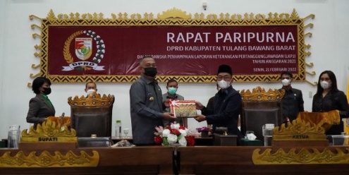 KIPRAH.CO.ID– Bupati Kabupaten Tulangbawang Barat, Umar Ahmad memberikan Laporan Keterangan Pertanggungjawaban (LKPJ) 2021 di hadapan anggota DPRD pada sidang paripurna, Senin (21/2/2022).