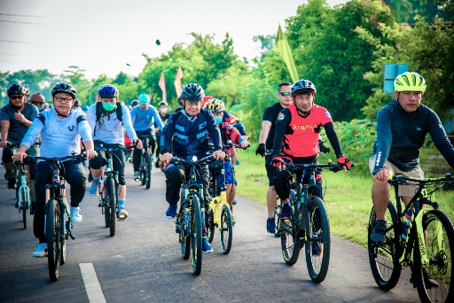 KIPRAH.CO.ID– Bupati Umar Ahmad. SP melakukan gowes bersama rombongan Gowes Ki Hadjar yang beranggotakan keluarga besar Dinas Pendidikan dan Kebudayaan Provinsi Lampung di Tulangbawang Barat, Jum’at (2/4/2021).