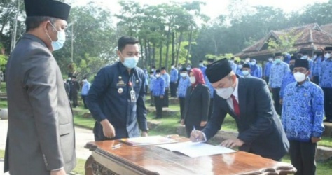 Bupati Umar Ahmad dalam sambutannya mengucapkan selamat kepada para pejabat yang dilantik, dan para ASN yang diambil Sumpah Janji Jabatan.