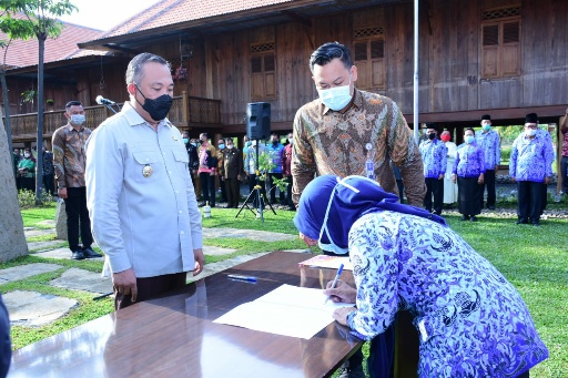 KIPRAH.CO.ID– Bupati Umar Ahmad SP melantik dan mengambil sumpah jabatan kepala unit pelaksana teknis sekolah taman kanak kanan, sekolah dasar, sekolah menengah pertama, dan pengawas sekolah di lingkungan Pemerintah Tulangbawang Barat, Kamis (3/6/2021).