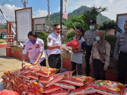 Pengurus Pokdar Kamtibmas Kota Bandarlampung dan Tim Binmas Polresta Kota Bandarlampung menyerahkan langsung kepada para aparat kelurahan tiga kecamatan.