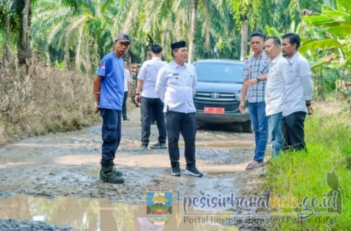 KIPRAH.CO.ID, PESISIR BARAT– Didampingi anggota DPRD dari Fraksi Partai Persatuan Pembangunan (PPP), Sholihan, Plt. Kepala Dinas Pekerjaan Umum dan Penataan Ruang (DPUPR), Mesrawan, S.STP., M.Si., Kepala Dinas Sosial (Dinsos), Agus Triyadi, S.IP., M.M., dan Camat setempat, Bupati Pesisir Barat (Pesibar), Dedi Irawan, meninjau empat titik ruas jalan yang akan dilakukan penanganan pada Tahun Anggaran 2025, Rabu, 3 September 2025.
