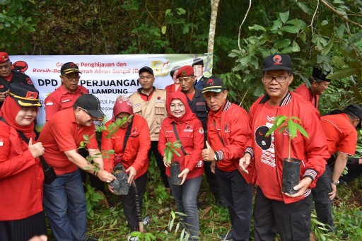 “Hal ini dilakukan sebagai bentuk kepedulian PDI Perjuangan untuk menjaga kelestarian lingkungan dengan penghijauan serta menjaga kebersihan aliran sungai,” ujar Bendahara DPD PDIP Provinsi Lampung, Sabtu (28/01/23).