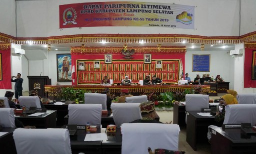 KIPRAH.CO.ID– Dewan Perwakilan Rakyat Daerah (DPRD) Kabupaten Lampung Selatan menggelar rapat paripurna istimewa dalam rangka memperingati Hari Ulang Tahun (HUT) Provinsi Lampung ke-55 tahun 2019, di gedung DPRD setempat, Senin (18/3/2019).