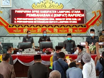 Paripurna itu dipimpin Ketua DPRD Kabupaten Lampung Utara, Romli bersama dengan Bupati Lampung Utara, Budi Utomo, dihadiri anggota Forkopimda Dandim 0412/LU Letkol INF Harry Prabowo, Kapolres Lampung Utara AKPB Bambang Yudho Martono, Ketua Pengadilan Agama diwakili Abdul Azis, Kakimal Lampung Utara Letkol Laut Muhammad Firdaus.