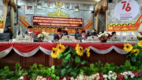 KIPRAH.CO.ID– Dalam rangka peringatan Hari Ulang Tahun Republik Indonesia ke-76, DPRD Kabupaten Lampung Utara mengadakan sidang istimewa mendengarkan pidato kenegaraan, Senin (16/8/2021).