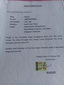 Dua orang itu yakni Kepala Dusun Kenari Satu dan Dua, FH sama MN. “Bapak Kades Padang Cermin, atas nama masyarakat Kenari Satu dan Dua, kami tidak senang lagi dengan Kadus yang tidak bisa melaksanakan tugas sebagaimana mestinya, tidak perduli dengan lingkungan dan tidak memperhatikan aspirasi masyarakat. Mohon kepada Bapak Kepala Desa (Kades) untuk segera mencari solusinya. Diganti atau disuruh mengundurkan diri,” ungkap salah seorang tokoh yang enggan disebutkan namanya, Sabtu (26/12/2020).