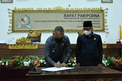 Pemerintah Daerah dan DPRD Tulang Bawang Barat telah mencapai kata sepakat untuk mengesahkan Raperda Perubahan APBD Tahun Anggaran 2021. Hal ini mengandung konsekuensi bahwa ada tanggung jawab untuk menyukseskan pelaksanaan seluruh program dan kegiatan yang tercantum dalam dokumen Perubahan APBD Tahun Anggaran 2021, sesuai dengan fungsi, tugas, dan kedudukan masing-masing.