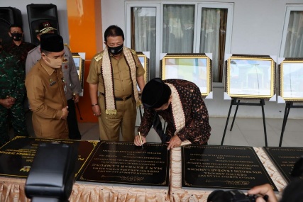KIPRAH.CO.ID– Gubernur Lampung Arinal Djunaidi mendampingi Menteri Agama Republik Indonesia Jenderal TNI (Purn) Fachrul Razi melakukan Penandatanganan Prasasti dalam rangka peresmian pembangunan Asrama Haji, Pusat Pelayanan Haji dan Umrah Terpadu (PLHUT) dan Gedung Balai Nikah dan Manasik Haji Kantor Urusan Agama (KUA) Provinsi Lampung di Gedung Orange Asrama Haji, Bandar Lampung, Selasa (11/8/2020).