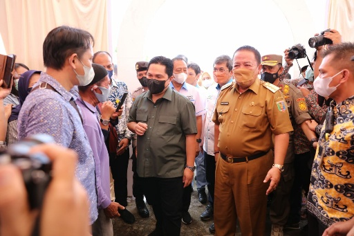 KIPRAH.CO.ID– Gubernur Lampung Arinal Djunaidi mendampingi Menteri BUMN Erick Thohir meninjau Operasi Pasar (OP) Murah Minyak Goreng dan Gula Pasir PTPN Group di PTPN VII, Bandar Lampung, Selasa (10/5/2022).