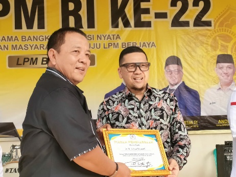 KIPRAH.CO.ID– Hadiri Perayaan HUT ke-22 Lembaga Pemberdayaan Masyarakat (LPM), Gubernur Lampung Arinal Djunaidi dianugerahi penghargaan LPM Award sebagai Tokoh Penjaga Kelestarian Kehutanan bagi masyarakat, penggagas Kartu Petani Berjaya, dan Penggagas Smart Village, oleh Ketua LPM Pusat DR. Ahmad Doli Kurnia Tanjung, di Desa Tanjung Anom, Kabupaten Lampung Tengah, Minggu (24/07/2022).