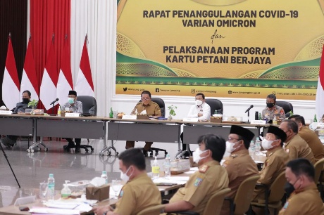 KIPRAH.CO.ID– Gubernur Arinal Djunaidi memimpin Rapat Penanggulangan Covid-19 Varian Omicron di Provinsi Lampung dan Pelaksanaan Program Kartu Petani Berjaya, di Mahan Agung, Senin (14/02/2022).