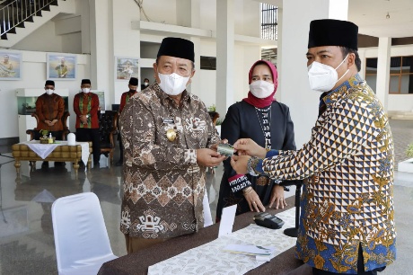 Gubernur Arinal, menyampaikan permintaan tersebut, pada saat Penyerahan Zakat oleh Gubernur Lampung Arinal Djunaidi bersama Keluarga kepada Badan Amil Zakat Nasional (Baznas) Provinsi Lampung, di Mahan Agung, Rumah Dinas Gubernur Lampung, Kamis (14/04/2022).