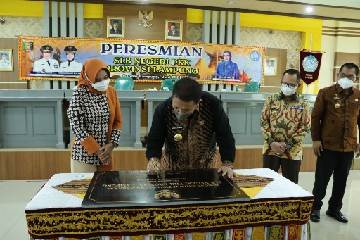 KIPRAH.CO.ID– Gubernur Arinal Djunaidi meresmikan Sekolah Luar Biasa (SLB) Negeri PKK di Ruang Rapat Besar Kantor PKK Provinsi Lampung Jl. Dr. Susilo Bandar Lampung, Kamis (24/6/2021).