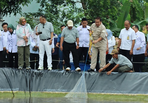 KIPRAH.CO.ID– Gubernur Lampung Arinal Djunaidi lakukan panen perdana _Pilot Project_ Budidaya Udang Vaname Air Tawar di Agropark PKK Lampung, Rabu (05/07/2023).