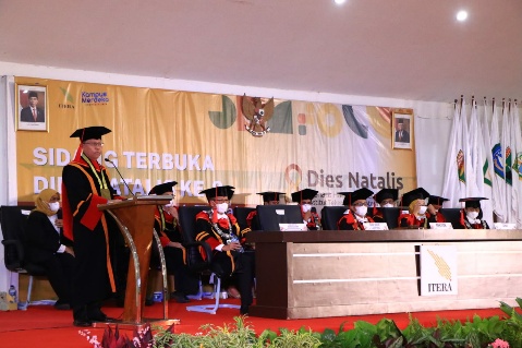 Membacakan sambutan Gubernur Lampung, Sekretaris Daerah Provinsi Lampung Fahrizal Darminto menyatakan bahwa atas nama Pemerintah Provinsi Lampung, Gubernur Arinal Djunaidi mengucapkan selamat memperingati Dies Natalis ITERA Ke-8, semoga ITERA dapat lebih berkembang guna menghadapi perubahan zaman yang semakin cepat.