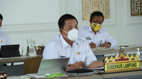 KIPRAH.CO.ID– Gubernur Arinal Djunaidi mengikuti Rapat Koordinasi secara daring bersama Menteri Koordinator Bidang Perekonomian dan Kepala BNPB, terkait antisipasi lonjakan Covid-19 di luar Pulau Jawa di Mahan Agung, Rabu (7/7/2021).