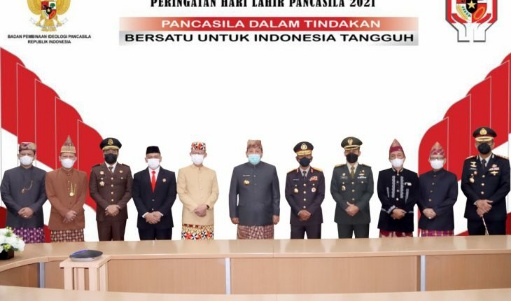 Upacara Peringatan Hari Lahir Pancasila Tahun 2021 diselenggarakan di tengah situasi Pandemi Covid-19 dengan tetap menerapkan protokol kesehatan secara ketat kepada seluruh peserta Upacara, baik yang mengikuti secara langsung di halaman gedung Pancasila Kementerian Luar Negeri maupun peserta yang mengikuti secara virtual di berbagai daerah di Indonesia.