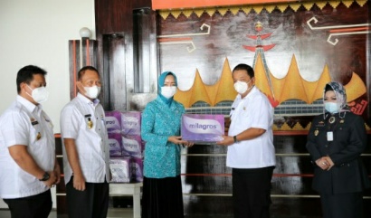 Adapun bantuan yang diterima Gubernur dari PT. Milagros Indonesia Megah yaitu 500 dus Milagros dan 5.000 Kg Beras.