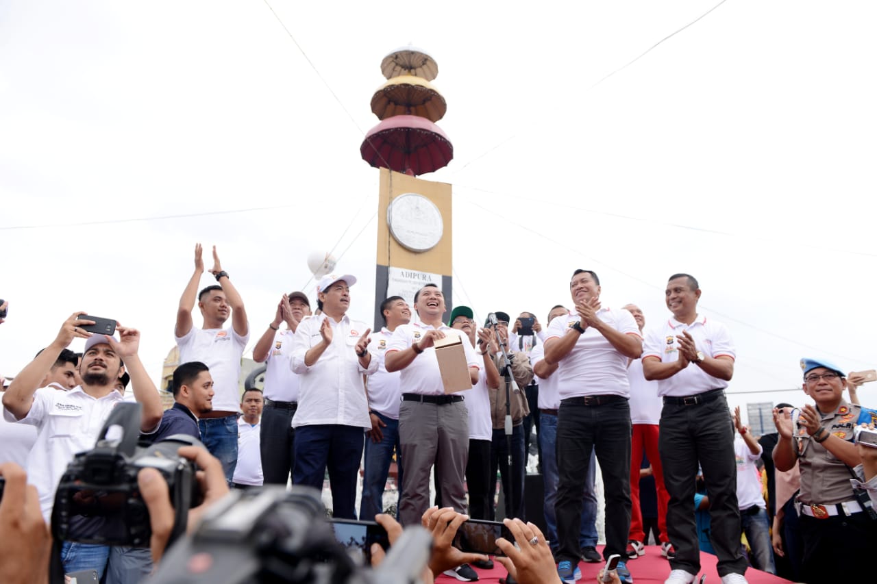 KIPRAH.CO.ID– Gubernur Lampung Muhammad Ridho Ficardo membacakan deklarasi safety riding yang kemudian diikuti oleh puluhan ribu masyarakat Lampung yang memadati tugu adipura Bandar Lampung, Minggu (3/2) pagi. Adapun pembacaan deklarasi tersebut adalah bagian dari rangkaian acara Milenial Road Safety Festival yang digelar oleh Polda Lampung bekerjasama dengan Polresta Bandar Lampung.