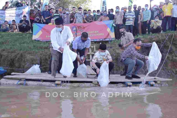 KIPRAH.CO.ID– Gubernur Lampung Arinal Djunaidi menebar ribuan bibit ikan di Sungai Tiuh Negara Batin, Kabupaten Way Kanan, Jum’at (17/7/2020). Hal ini sekaligus untuk membudidayakan ikan air tawar di daerah itu.
