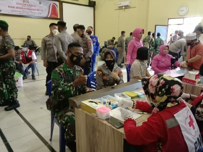 KIPRAH.CO.ID– HUT Bhayangkara ke-75, jajaran Kodim 0426 Tulang Bawang (Tuba) ikut meriahkan dengan kegiatan donor darah di Mapolres Tulang Bawang, Jumat (25/6/2021).