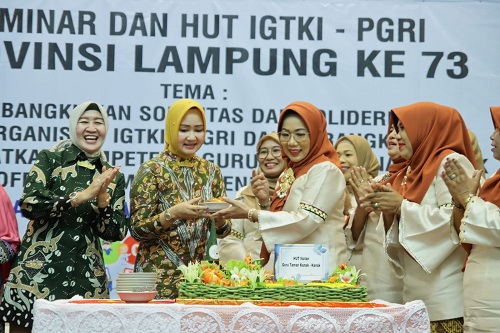 KIPRAH.CO.ID– Bunda PAUD Provinsi Lampung, Riana Sari Arinal diwakili oleh Ketua Pokja Bunda Paud Provinsi Lampung Rusdiana Adi Erlansyah, membuka Seminar dan HUT Ikatan Guru Taman Kanak-Kanak Indonesia (IGTKI) – PGRI ke-73 bertempat di Balai Keratun Lt.III, Selasa (11/07/2023)