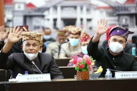 Sementara, Bupati Lampung Selatan, H. Nanang Ermanto dan Wakil Bupati Pandu Kesuma Dewangsa, S.IIP beserta anggota Forkopimda, Sekretaris Daerah Kabupaten Lampung Selatan, Thamrin S.Sos, MM dan para pejabat mengikuti rapat paripurna tersebut dari Aula Rajabasa, kantor bupati setempat.