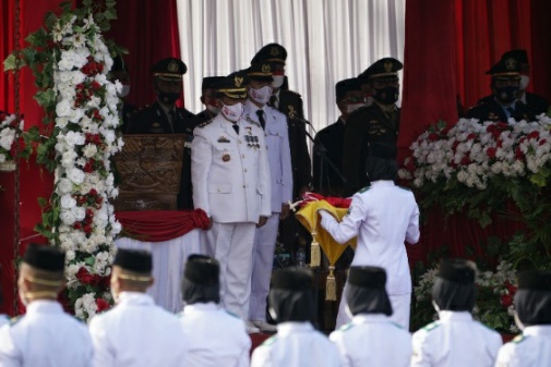 Peringatan hari kemerdekaan Republik Indonesia ke-76 tahun 2021 dengan tema “Indonesia Tangguh, Indonesia Tumbuh” ini serentak dilaksanakan penuh hikmat ditengah masa pandemi covid-19 sehingga dalam pelaksanaannya harus dengan memperhatikan protokol kesehatan. (Gus)