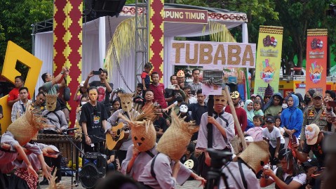 Namun karena PKOR diguyur hujan, agenda karnaval budaya mask land yang diikuti 72 Grup dari Kabupaten/Kota dan Instansi di Provinsi Lampung dibatalkan, diganti dengan menampilkan tari Tuping, termasuk Wakil dari Tubaba, yang menampilkan Tari Nenemo, dengan mengenakan Topeng terbuat dari Anyaman Tikew, yang sangat atraktif. (*)