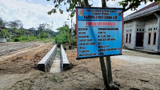Sedangkan untuk banguanan drainase sepanjang 700 meter yang terletak di dusun 02, Rt. 04 Kampung UGI, dengan anggaran sebesar RP. 32. 861.000,- dari DD tahun 2021. Pembangun fisik tersebut pelaksaannya dari Kampung Ujung Gunung Ilir.