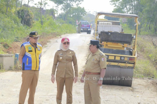 Demi memastikan kualitas pengerjaan jalan tersebut, Bupati Tulangbawang Winarti meninjau Jalan Tegamoan, Senin (8/8/2022) pagi.