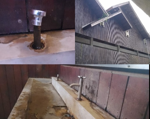 Salah satu pengunjung lokal, Dedi mengungkapkan beberapa fasilitas yang mengalami kerusakan itu, seperti patahnya keran air, rumput-rumput liar dan lumut pada sejumlah titik bangunan gedung sesat agung.